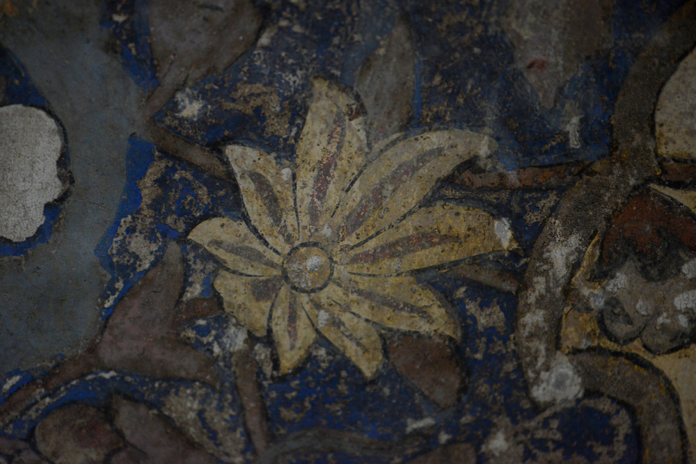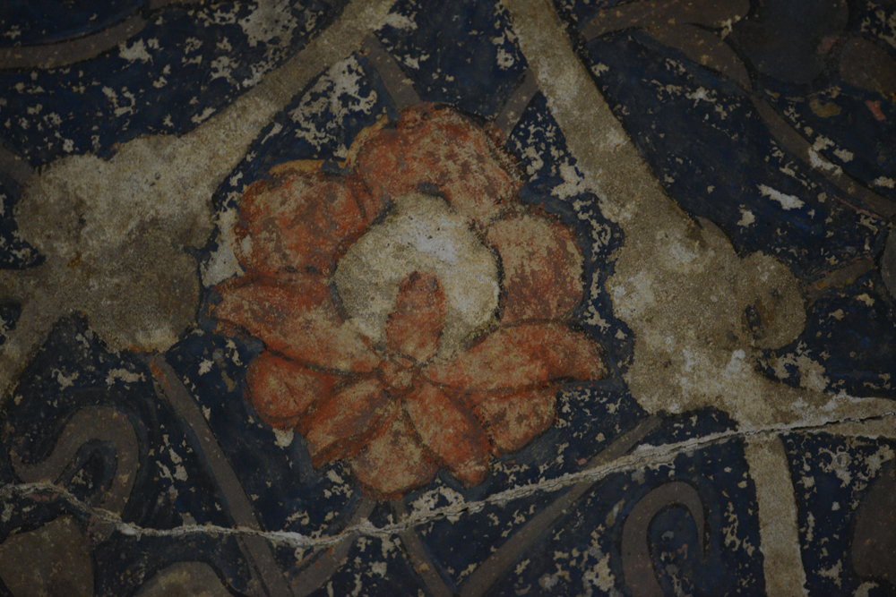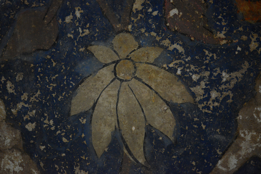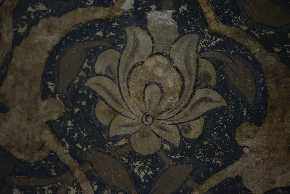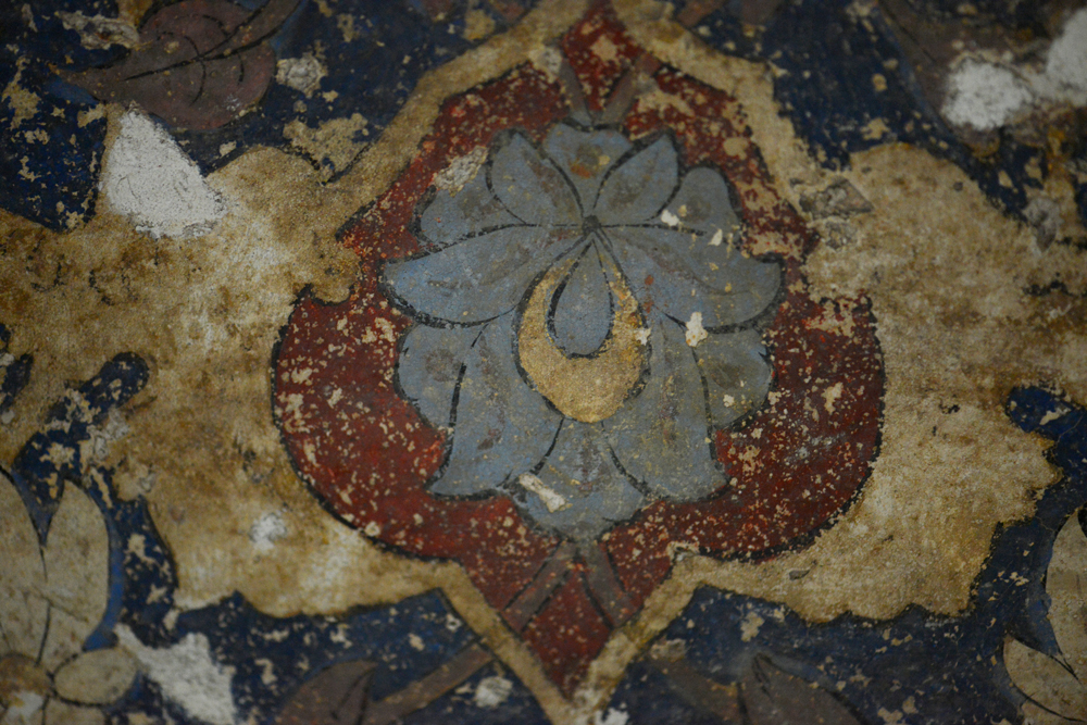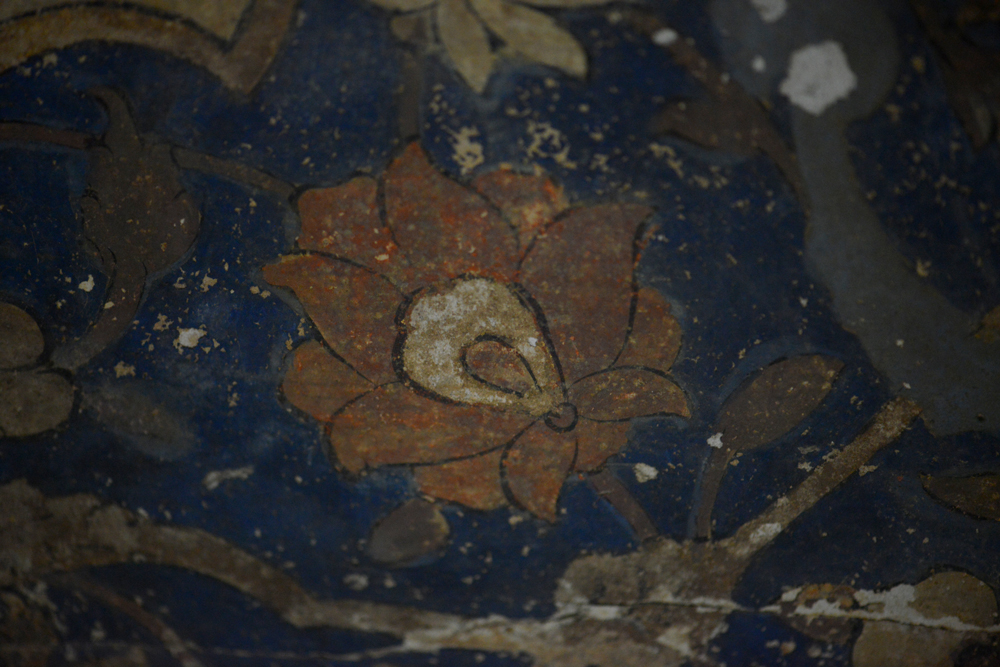 Conservation works undertaken by the Aga Khan Trust for Culture with the support of Havells revealed the striking ceiling painted with pure gold and lapis. The painting depicts how the complete painted ceiling would have appeared before the loss in portions due to rainwater ingress in recent decades.