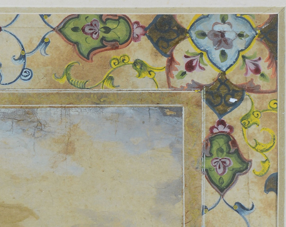 In this painting, the artist has rendered the portrait of Sher Afghan Khan. Not to be mistaken as Sher Shah Sur, the powerful Lodhi ruler. The artist has displayed tremendous precision and control in this rendering. Realism, psychological insight, sensitivity make this a fine example of portraiture. Thus, portraits such as these, are important documents that offer an insight into the past by immortalizing both known and lesser-known personalities.