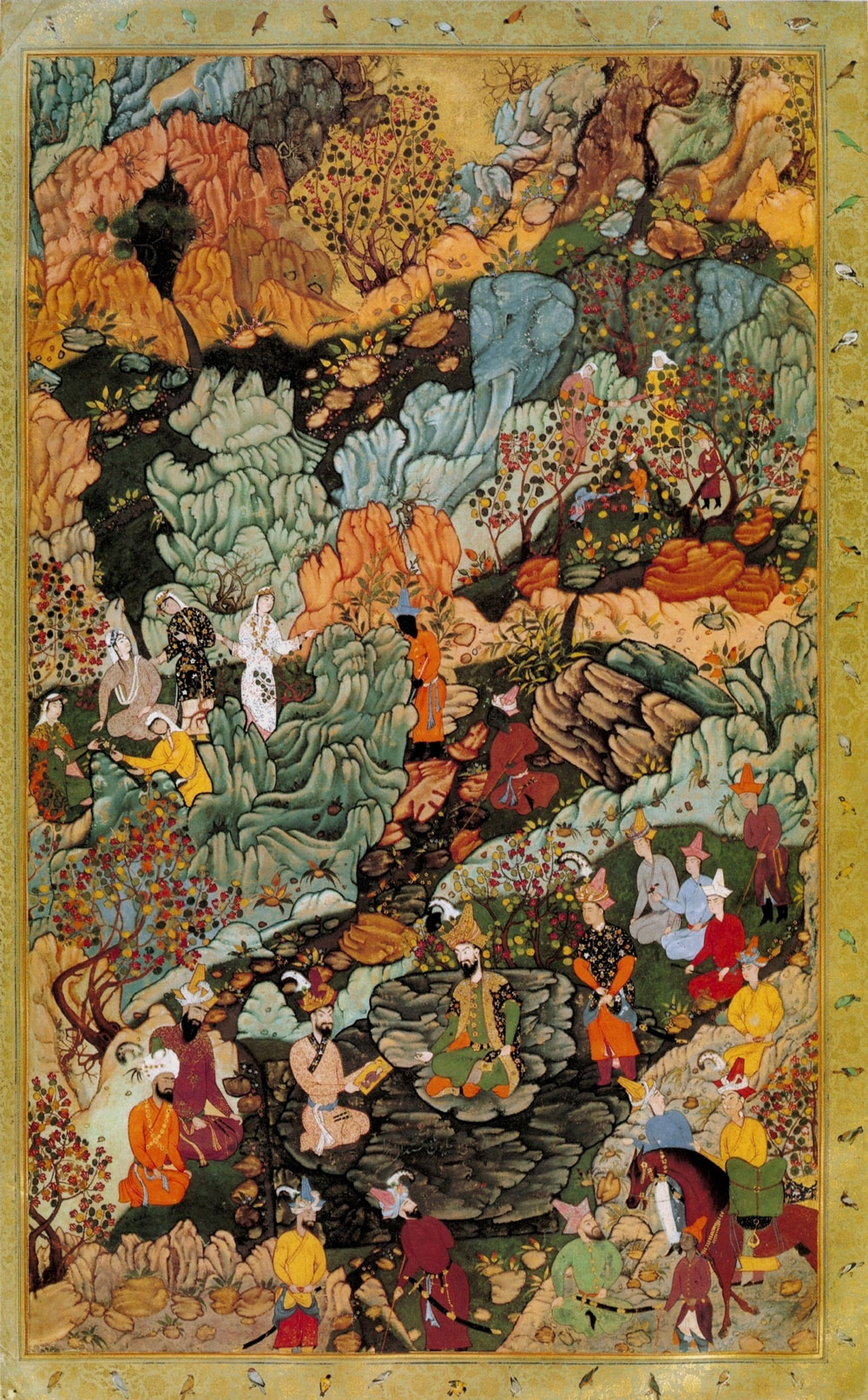 As "chief of his works, as Khwandamir put it, Humayun designed a new headgear, which he called the taj-i 'izzat, literally the crown of glory or power.383 Its description and depictions show that it was not a crown but an enriched variant of the Qalpak, a conical hat with a broad turned-up brim, which is a common type of Central Asian headgear. Humayun embellished it with gem studded aigrettes and a light-colored fabric wrapped around it crosswise to form shapes resembling the Arabic figure for seven, V. Where two of these V-shaped parts were next to each other, they produced the figure of 77, which according to abjad reckoning was the numerical value of the word ‘izz’, meaning honour, power and glory. The numerical value of letters formed an important aspect of the science of letters discussed above. It has been pointed out that Humayun designed his taj-i izzat as his counterpart to the taj-i Haidari, the Safavid headgear that was a distinct symbol of the Sufi brotherhood out of which the Safavid dynasty emerged. It was named after Haider Safavi (1459-1488), the father of Shah Ismail, the founder of the dynasty.384 Humayun had experienced the political significance of the taj-i Haidari when Shah Tahmasp wanted him to wear it at their meeting in 1544. Abu'1 Fazl says that Humayun thought out the taj-i 'izzat in his youth, as a lonely governor of remote Badakhshan, and that when he presented it to his father at Agra, Babur liked it immensely. The Padshah wore the taj-i 'izzat in a single colour of the respective planet of the day, while the courtiers had to wear theirs in two colours, different inside and out. Each of his courtiers was granted a special headgear.